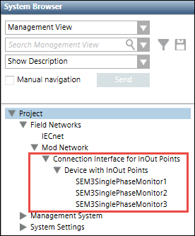 c. Import the devices to the management platform. - All the EMMMs will be displayed as children of the SEM3 controller in System Browser.