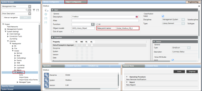 - Select Project > System Settings > Libraries > L1-Headquarter > Global > Modbus.
