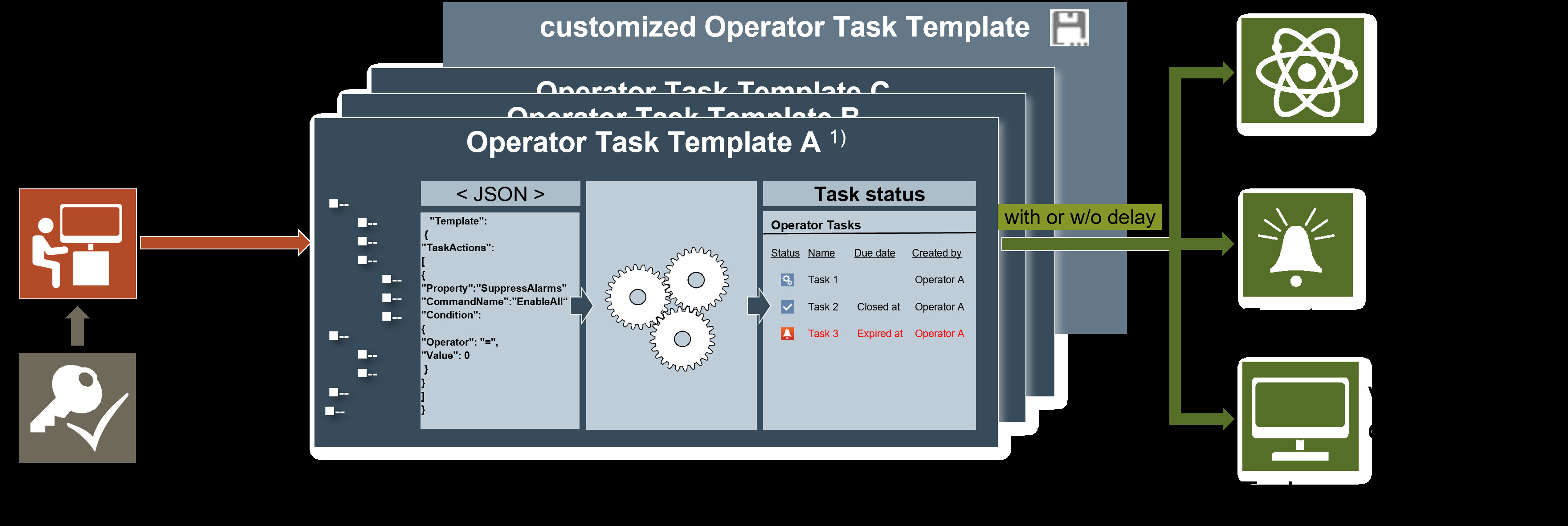 This section provides reference and background information for configuring the Operator Tasks extension module, which extends the core functionality of Desigo CC by adding the capability to configure tasks templates and create and manage operator tasks. For a guide to the integration procedure, see the engineering step-by-step section. For operator instructions, see the operating step-by-step section.