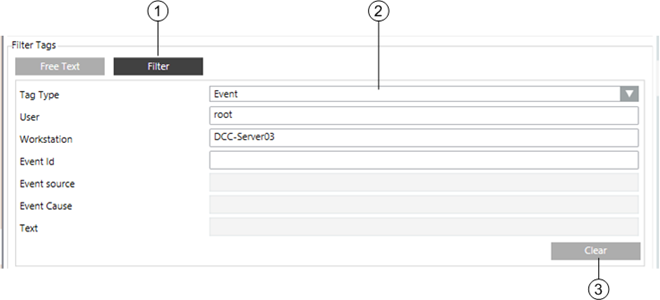4 | Free Text and Filter buttons | Allows for choosing between tag-search options: |