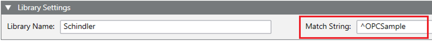 - Match String (this value is needed to identify the OPC server that exposes the OPC items that you want to model with your library).
