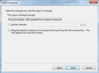 - In the Search field, enter mmc, and in the Programs section, click mmc.exe.