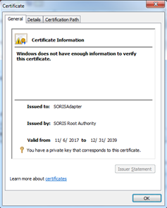 - You want to install the SORISRootCert.cer file and the SORISServerCert.pfx file to the Microsoft Management Console.