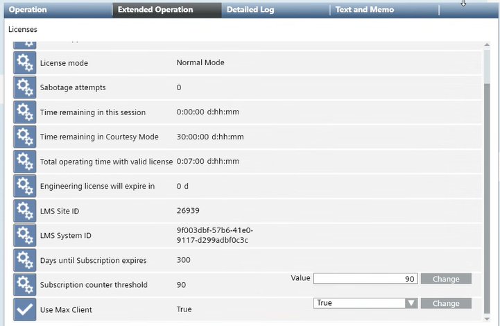 Time remaining in Courtesy Mode | Residual time in Courtesy Mode, during which it is possible to temporarily work with the project until a valid and sufficient license is installed again. |