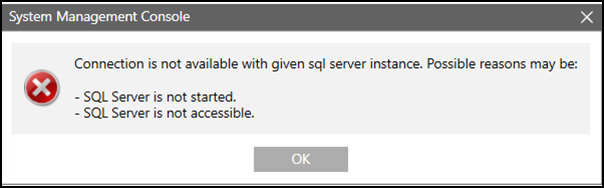 - SMC is launched with a Windows account configured on SQL Server with sysadmin fixed server role. If the required privileges are not available a dialog box appears to provide a Windows account configured on SQL Server with sysadmin fixed server role.