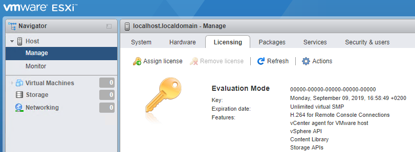 - In the Navigator pane, select Host, expand it, and select Manage.