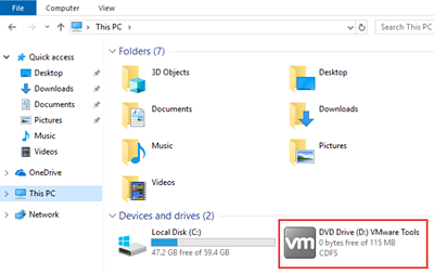 - In Windows Explorer, you can see the VMware Tools mounted as a virtual DVD drive