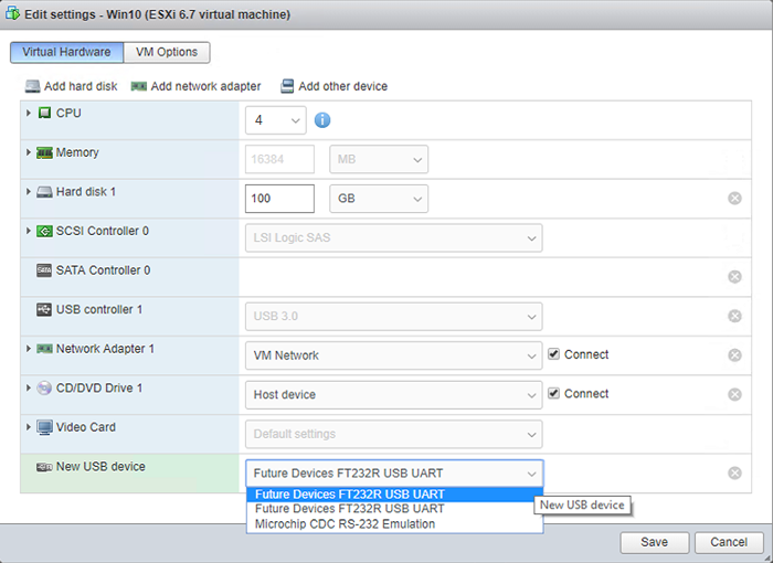 - SNC cards (as necessary): select Add other device > USB Device, and then select Future Devices FT232R USB UART