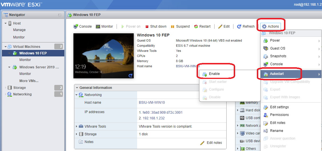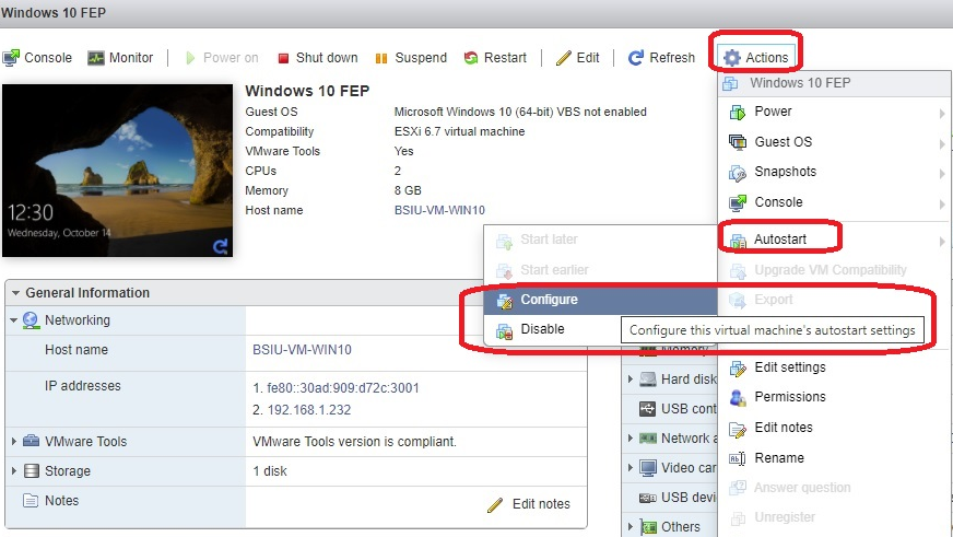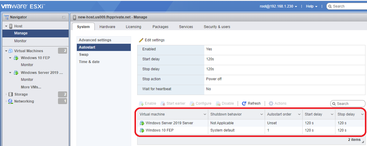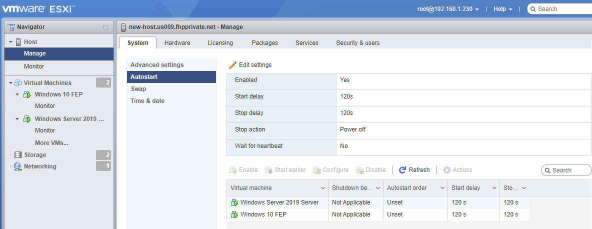 - In the System tab, in Autostart, select a virtual machine in the list and click Start Earlier to move it earlier in the startup sequence.