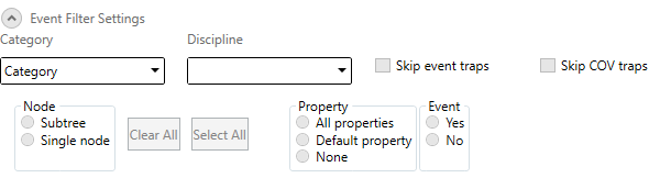 - To restrict the event categories, expand Categories in the Category drop-down list, and then select the check boxes that correspond to the categories you want to include.