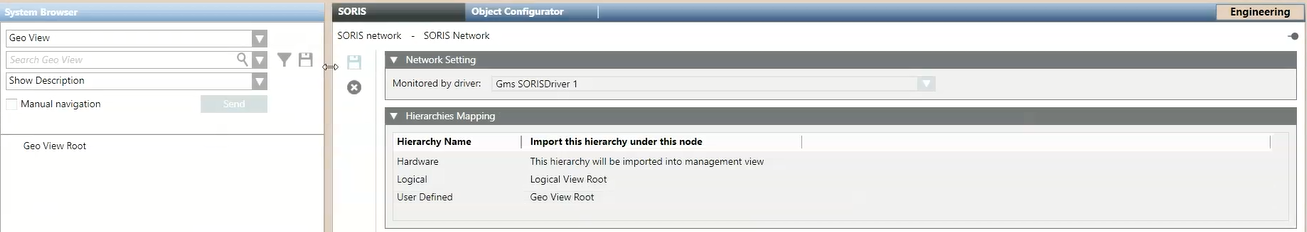 Define the geographical view as the target of the import of the objects hierarchies as follows: a. In System Browser, select the geographical view from the drop-down list. b. In the tree structure, select the root node of the view and drag it to the User-Defined field in the Hierarchies Mapping expander.