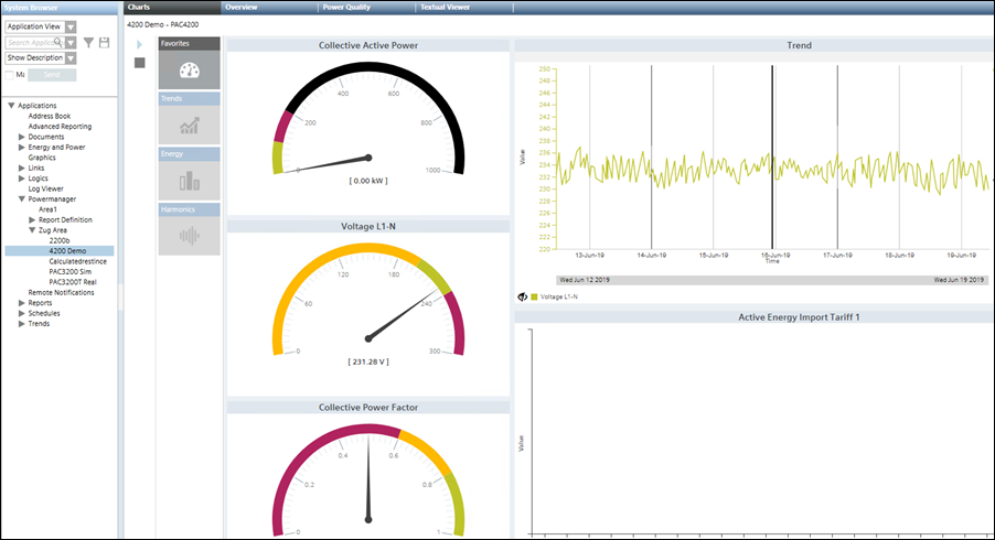 . - The controls associated with the devices such as gauges and trends display in the Primary pane.