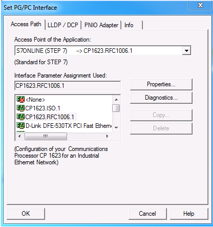 - Configure the PG / PC interface in Desigo CC. In the Access Point of the Application drop-down list, select CP1623.RFC1006 if the fault-tolerant connection is configured via IP address (CP443-1EX30, CP443-1GX30, CPU400H-PN).