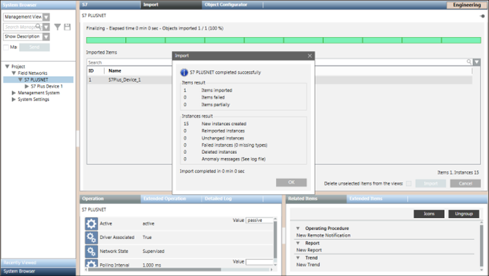 - When the import completes successfully, the Import dialog box displays a summary of the import information.