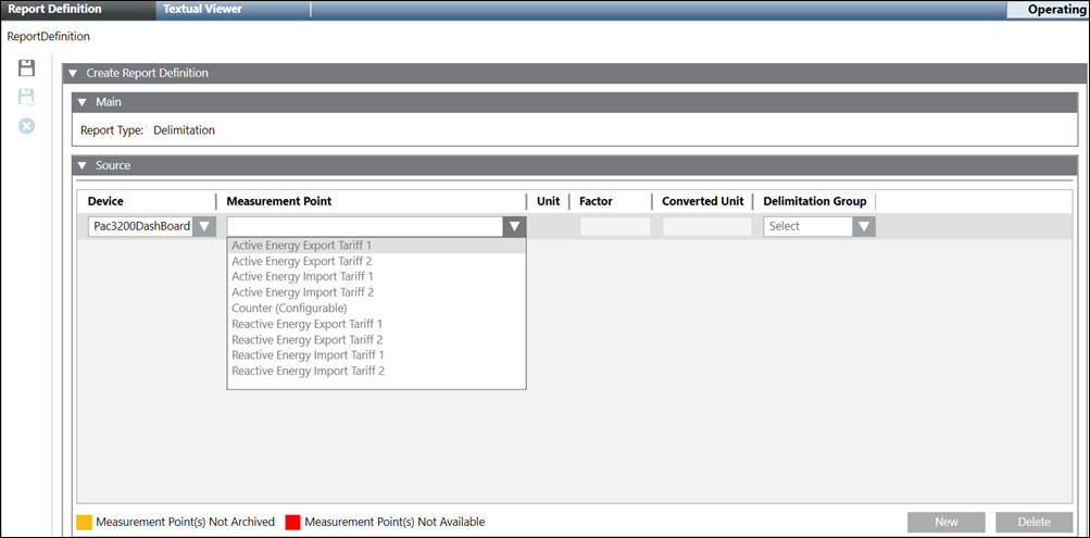 - In the Main expander, Report Type displays, Delimitation, the type of the report.