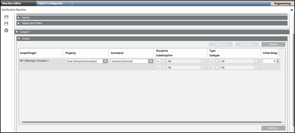 - Open the Output expander and then click the Action expander.