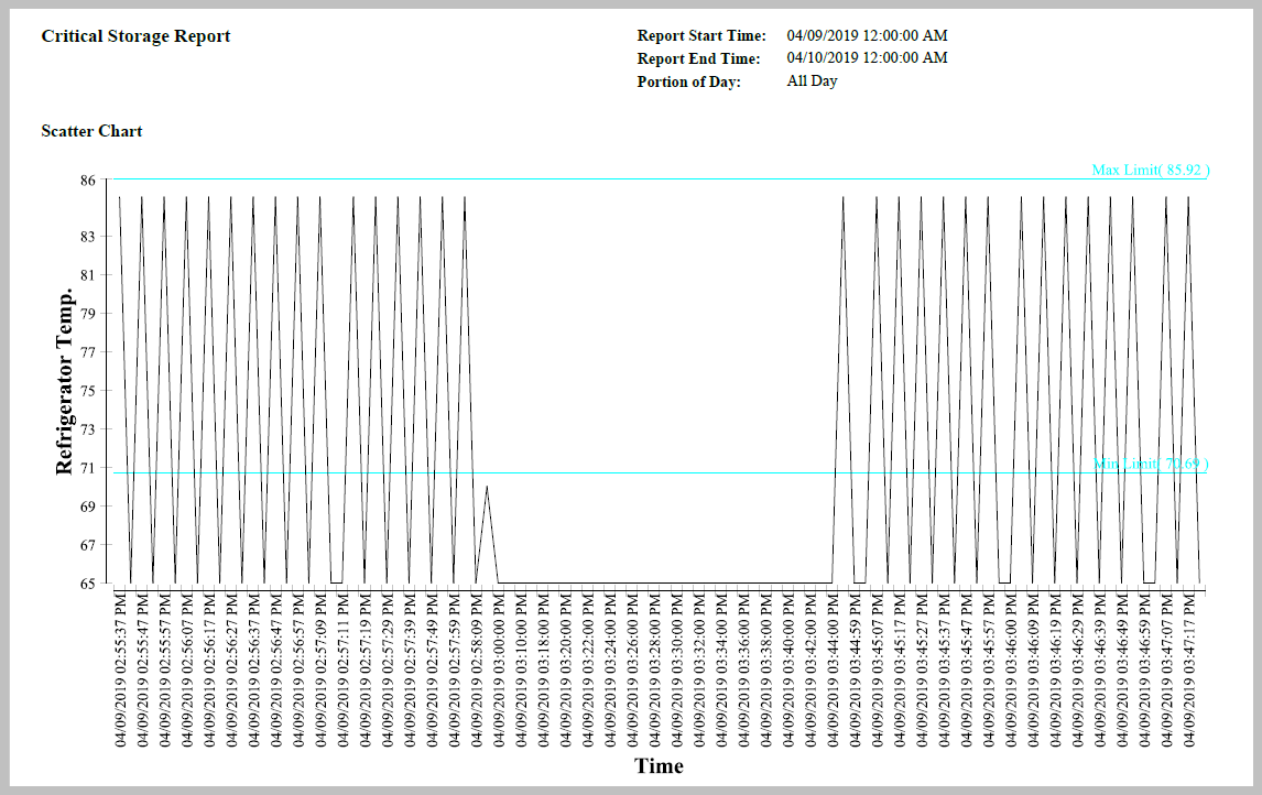 This report is designed to show temperatures and alarms of critical storage equipment such as refrigerators, freezers, and incubators.