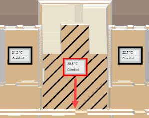 Scenario: The room value display is placed in the middle of the given room by default. The room value display can be manually moved to another position if the position is unfavorable.