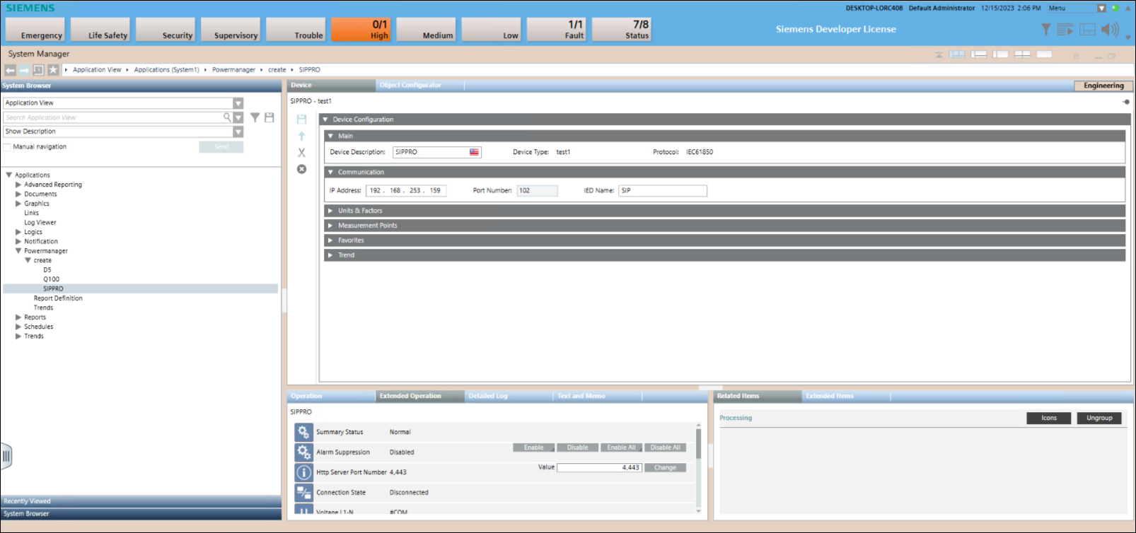 - Navigate to Create > Communication and enter the IP Address and IED name.